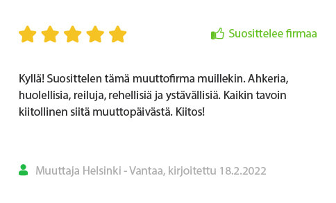 Lisäksi tarjoamme isommille muutoille urakkakohtaista hinnoittelua, jossa sovimme etukäteen muuton yksityiskohdat hintoineen, eikä sinun näin tarvitse murehtia tikittävästä kellosta.